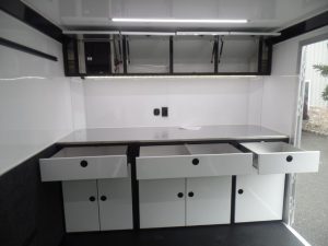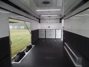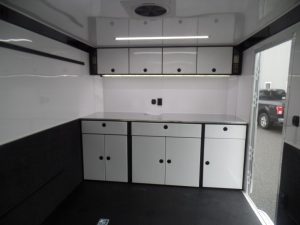 4. Cabinets on front wall, 30″ deep configuration with Side Access Door Road Side and Generator Door