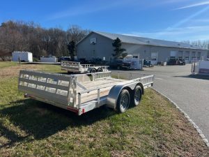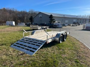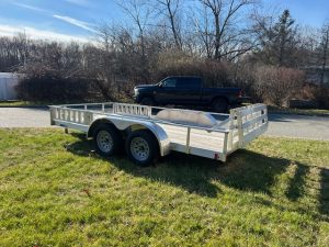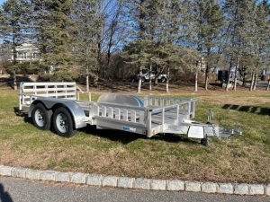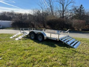 Open Trailer 79″ wide by 14 ft. long, great for Landscaper, Quads, Side X Side, Can Load From sides or rear. Will Carry 5,150 lbs. Only 850 lbs. empty #135707