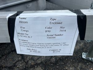 ALCOM BRAND 7X14 enclosed Aluminum Frame Trailer, new XLT Model , 7,000 lb. GVWR, 1,587lbs. empty! ID 156094