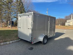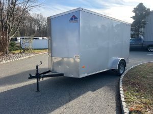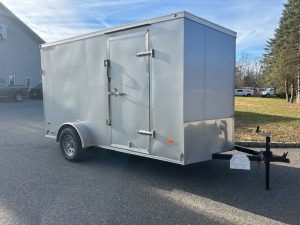HAUL ABOUT BRAND, 6’X12′ single axle enclosed trailer. Model CGR612SA, our premium brand cargo trailer. ID#015035 Silver Exterior