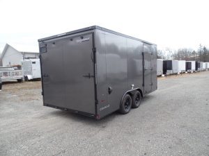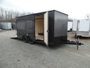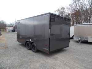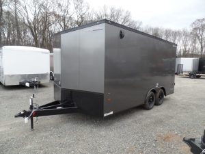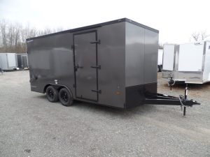 HAUL ABOUT BRAND, MODEL CGR8516TA2 8 1/2 by 16 ft. enclosed car trailer, Charcoal Gray with Black trim, 7,000 lb. GVWR ID#017077