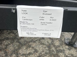 LOOK Brand 8.5X20 enclosed landscape model, 9,990 lb. GVWR, Flange Style Ramp – no flap. Long tongue. ID#136153