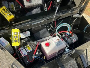 Box on tongue with hydraulics and battery