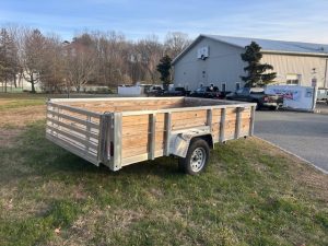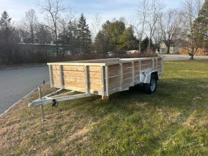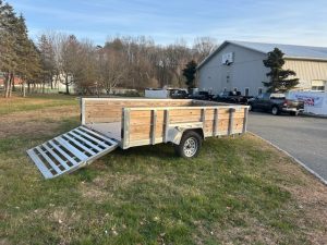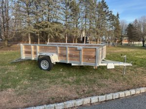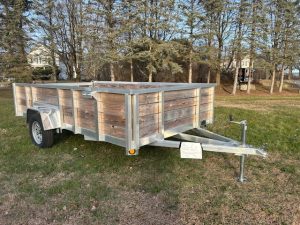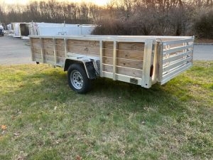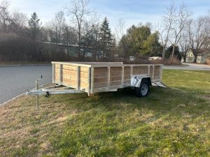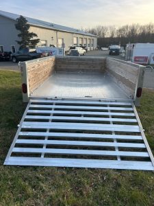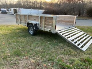 QUALITY S&A BRAND , 7 X 12 open utility trailer, Aluminum Frame and Deck, 2 ft. high sides, Bi-fold Ramp, 2,990 GVWR, 830 lbs. empty weight. ID#244735