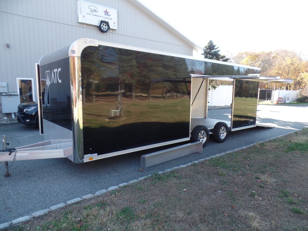 ATC 8.5×24 Model RM400 Car Hauler, 9,990 lb. GVWR, Aluminum Frame, Big Escape Door with Removable Fender. ID# 233213 Black Exterior