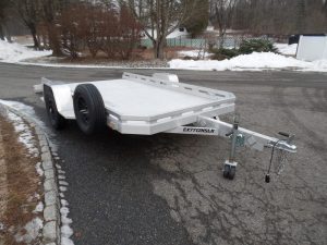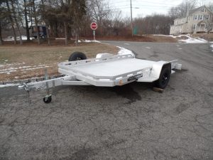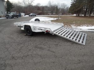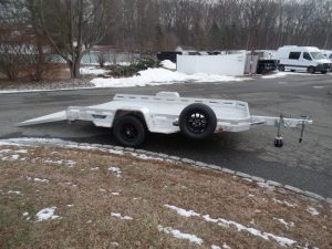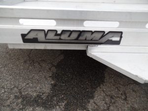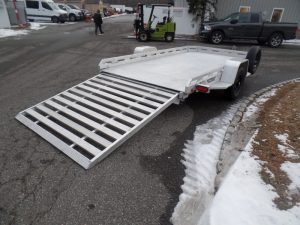 USED Aluma Executive Series model EX7712HSLR 77.5″ wide, 11′ 10″ long deck. 2,990 lb. GVWR, Slide Out Ramp hides away when towing. ID# 292816